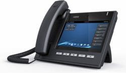 IP видеотелефон Fanvil D900 функционирует на ПО Android 4.2 и имеет большой 7-ми дюймовый сенсорный дисплей разрешением 800×480 пикселя. 2 порта Ehernet 10/100/1000 Мбит/с обеспечивают работу в режиме моста или NAT. Телефон оснащен встроенной камерой 5 МП. Возможна установка Skype.